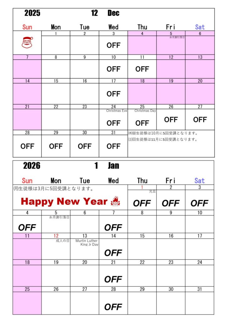 12月はクリスマスイベント🎄1月にはNew Year Party🎍を企画しております。