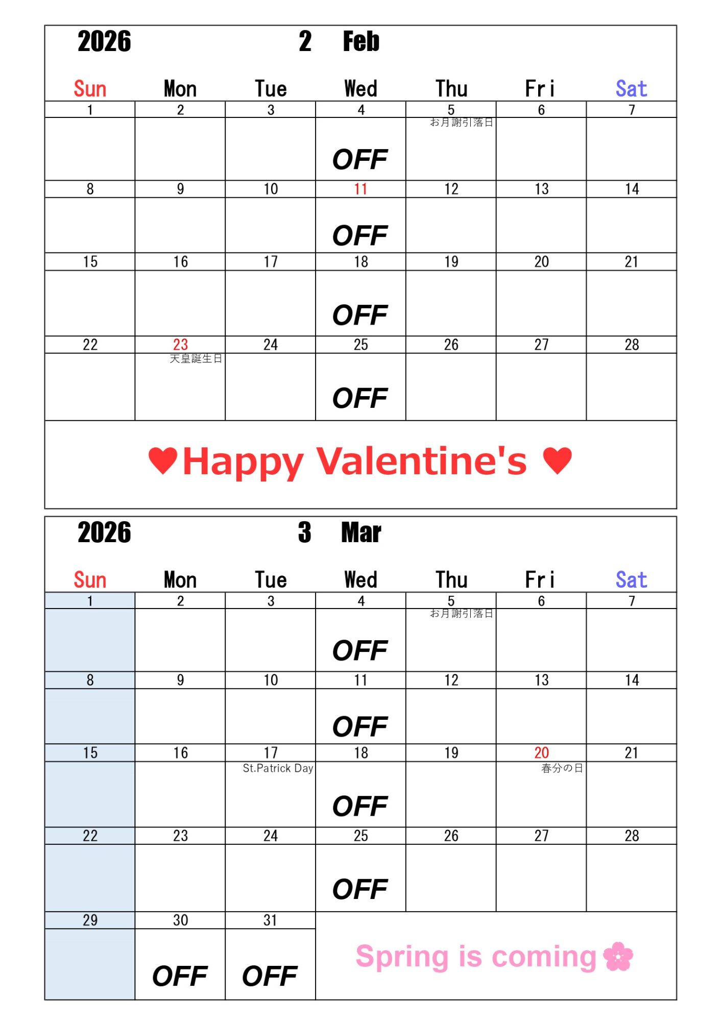 寒い日がまだまだ続きますが、無理せず体調管理頑張っていきましょう💪